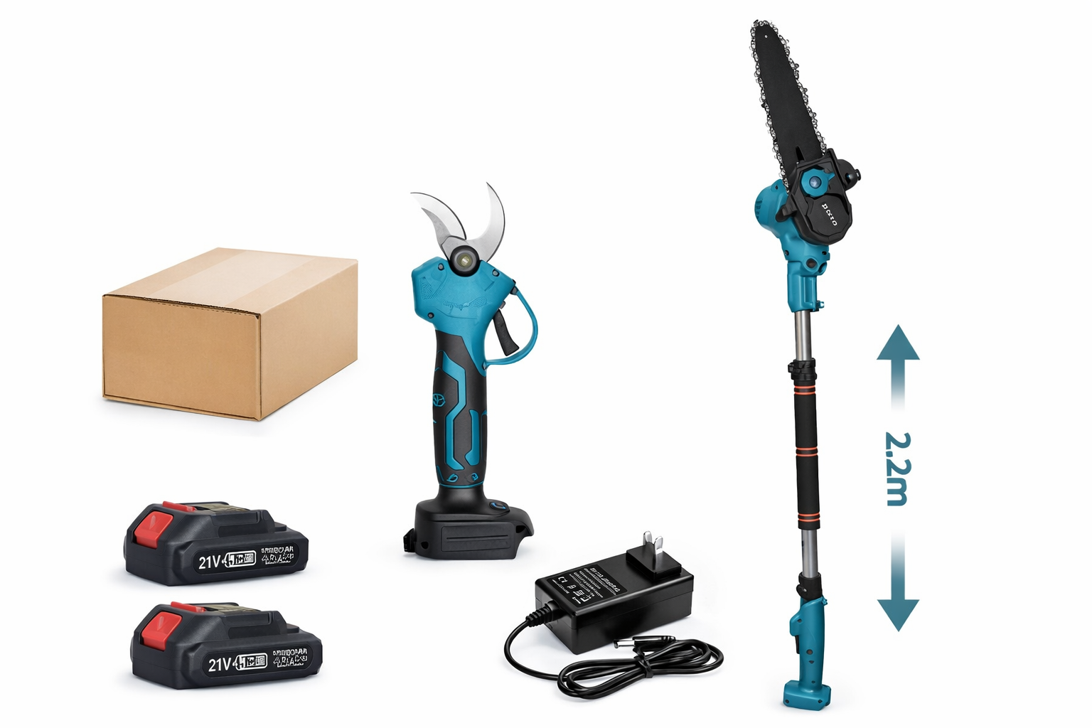 Profesionalni 3-u-1 akumulatorski set za orezivanje koji vam omogućava da brzo, lako i bez napora sečete grane u dvorištu, voćnjaku ili vinogradu.
